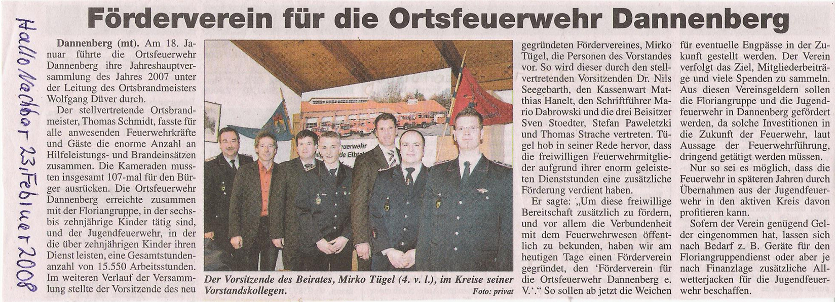21.01.2008 - Elbe-Jeetzel-Zeitung über die Gründung