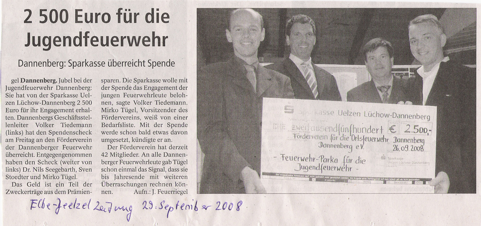 29.09.2008 - Elbe-Jeetzel-Zeitung über eine Spende der Sparkasse