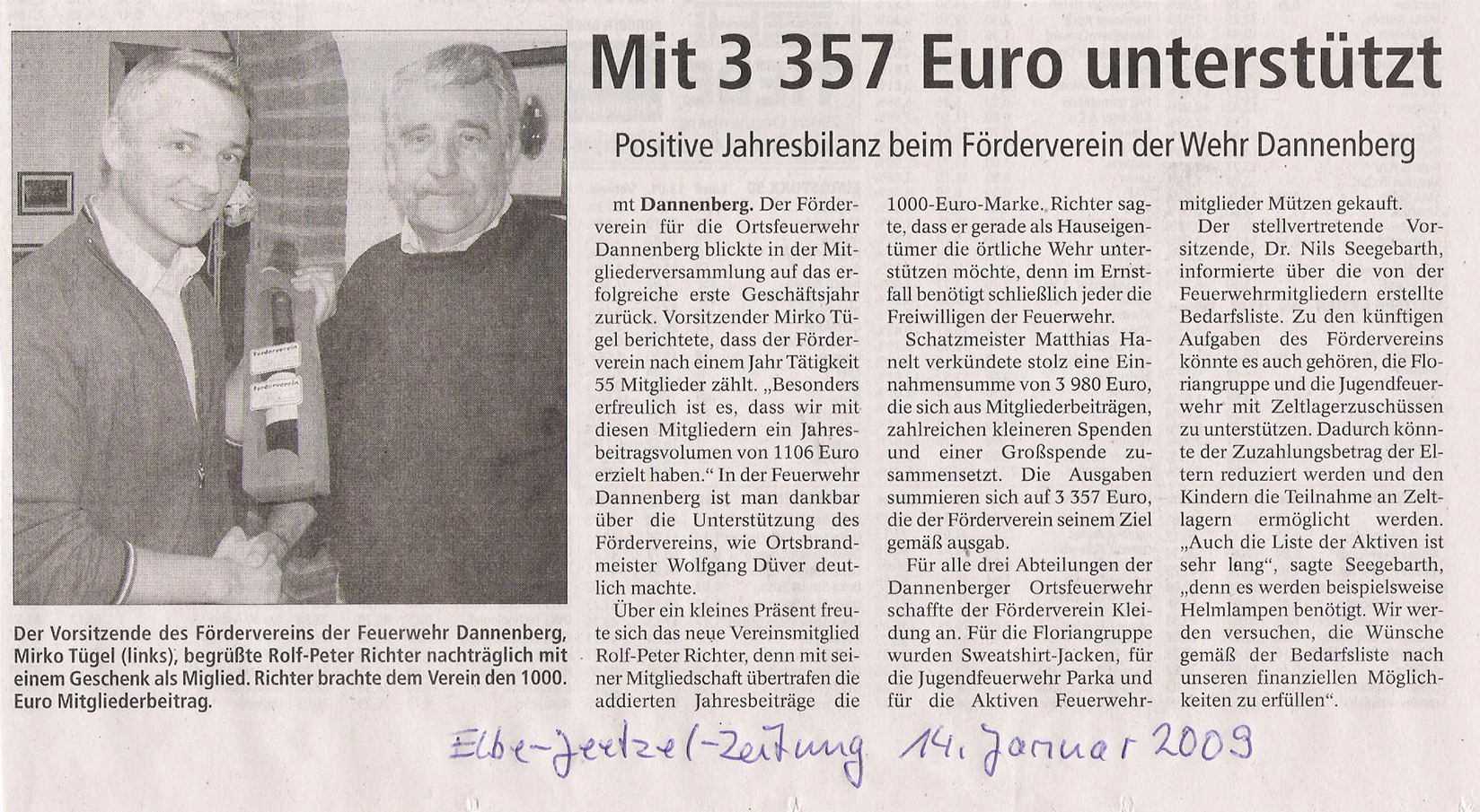 14.01.2009 - Elbe-Jeetzel-Zeitung über Beitragsrekord