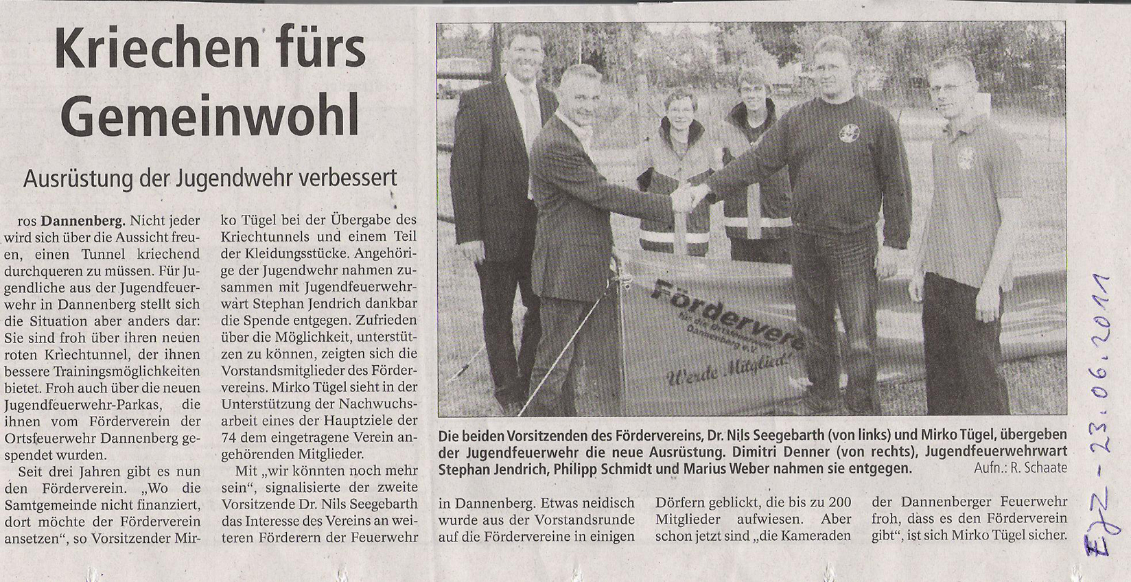 23.06.2011 - Elbe-Jeetzel-Zeitung über einen Kriechtunnel für die Jugendfeuerwehr